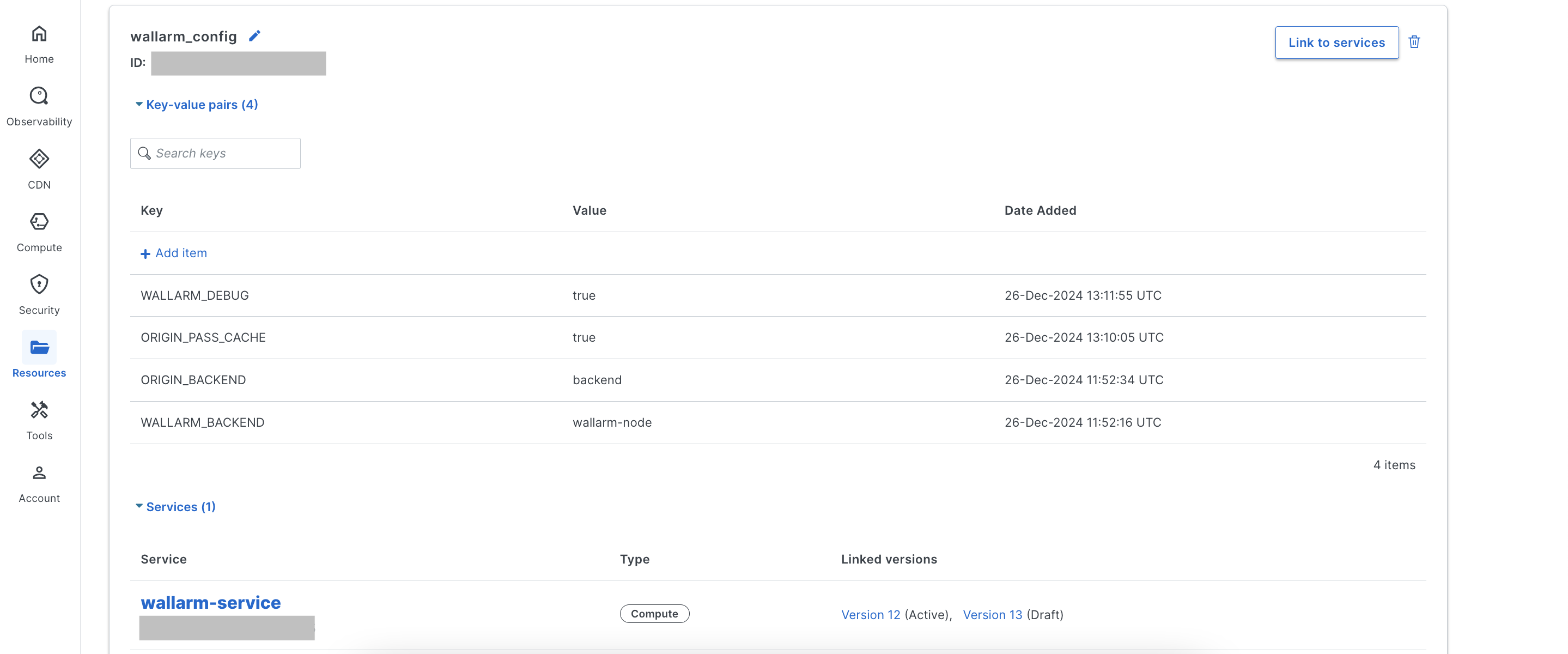 1. Link the config store to the Wallarm Compute service.