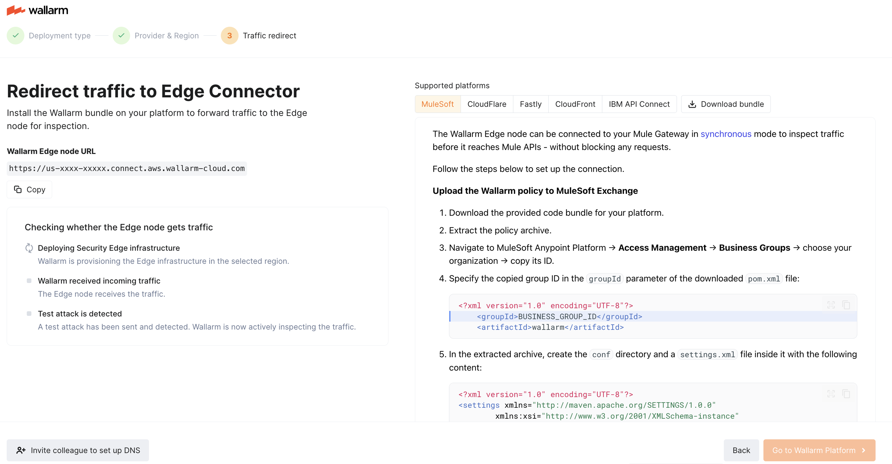 You can reopen the wizard later via the Quick setup in the Security Edge section or at /onboarding.