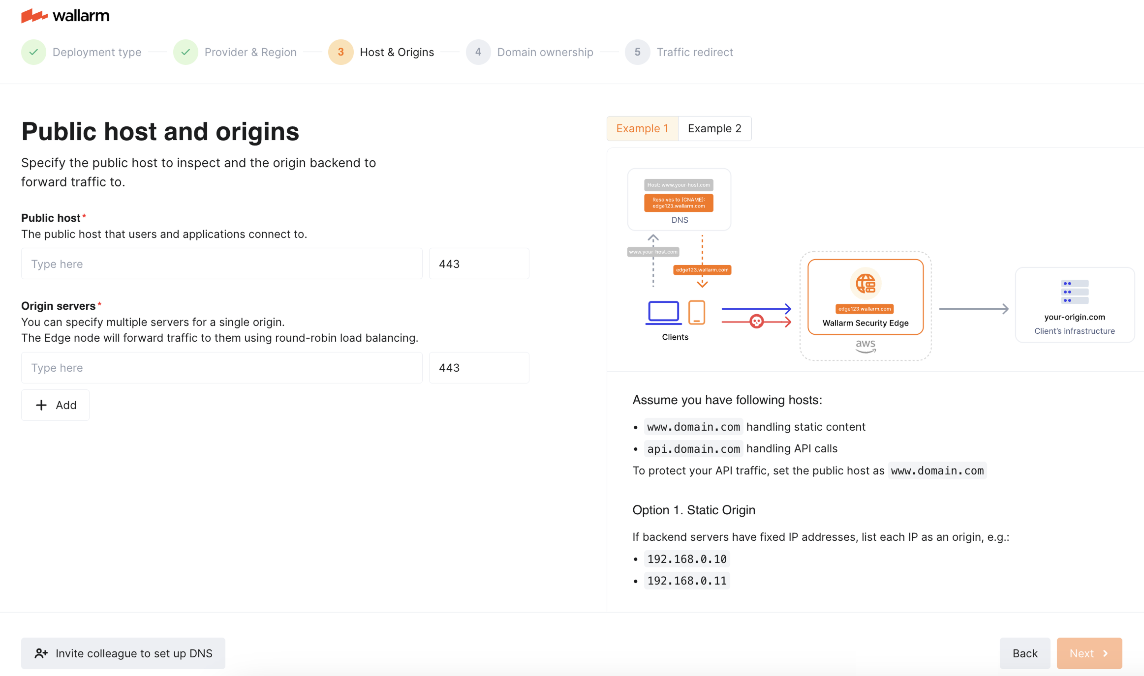 If the origin has multiple servers, you can specify all of them. The Edge Node will forward traffic to them using round-robin load balancing.